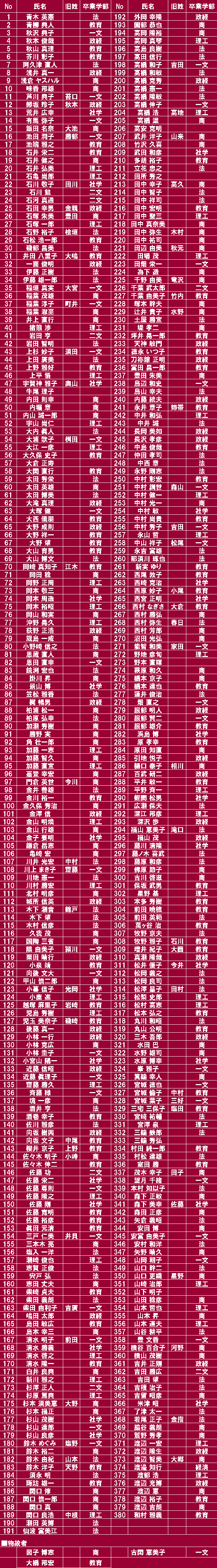 過去の参加者 氏名・卒業学部一覧